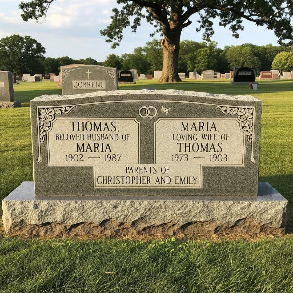 The most fundamental pieces of information on a custom headstone are the full name and the complete dates of birth and death. For married women, including a maiden name is one of the most helpful details you can provide for future genealogists tracing the family tree.
