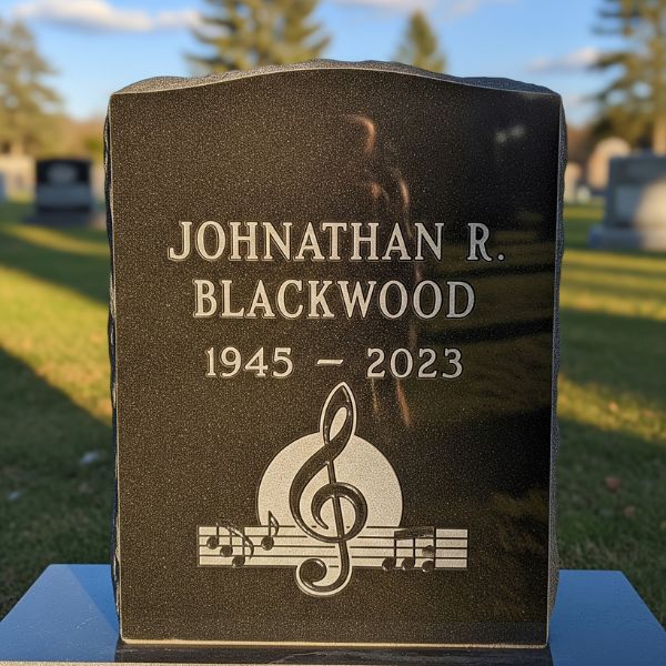 Symbols on custom tombstones are a powerful, shorthand way to tell a story about an individual’s life, faith, and passions. A military emblem honors their service, a religious symbol speaks to their faith, and icons representing a profession (like a book for a teacher) or a hobby (like a musical instrument) give a glimpse into who they were as a person.