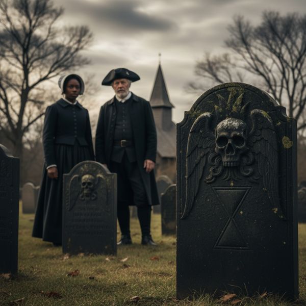 The Puritan Era In 17th and 18th-century America, tombstones took on a new, grimly artistic form. Carved from dark slate, these iconic headstones featured symbols meant to remind the living of their own mortality. You’ve likely seen pictures of them: winged death’s heads (skulls with wings), skeletons, hourglasses, and scythes. These gravestone designs reflected a stark focus on death and the afterlife, serving as a public warning to the living.